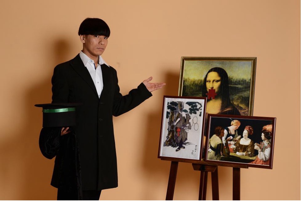 学芸員と美術検定2級の資格を持つ異色のマジシャン。テーブルマジックからステージ、大道芸までを幅広くこなす。
