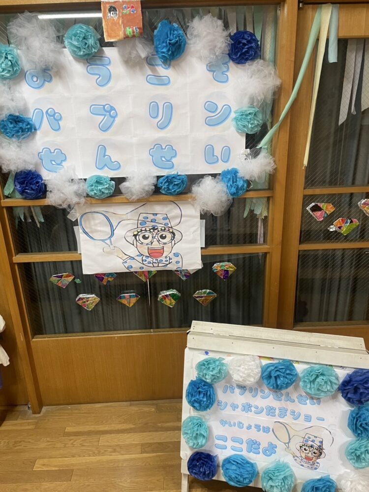 1/28 150名に向けて保育園でシャボン玉ショー