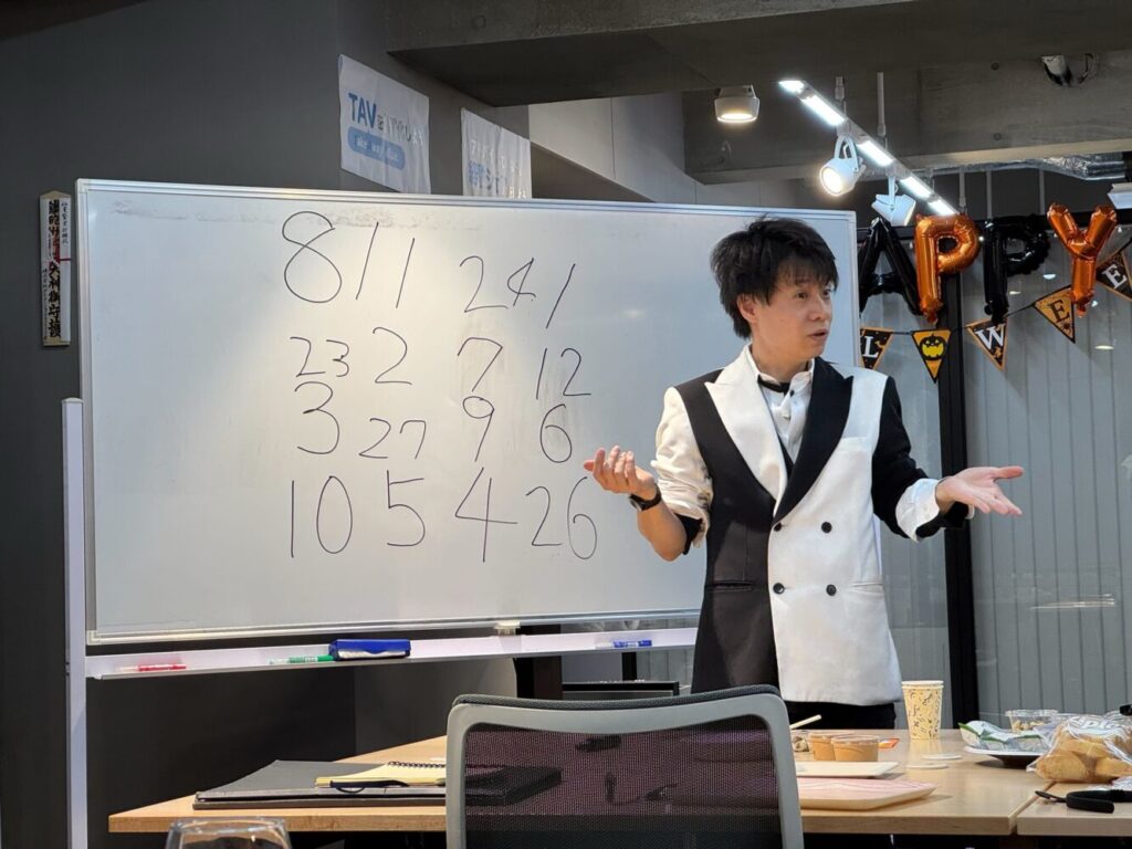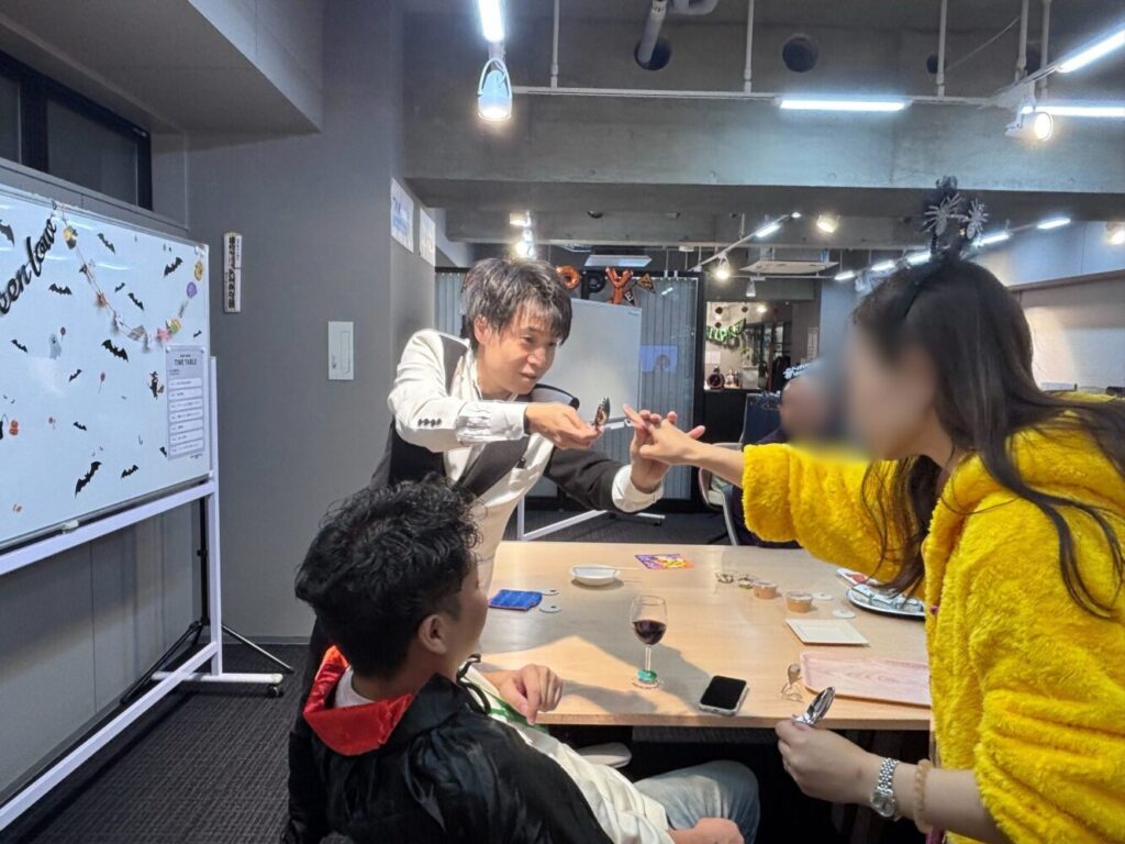 2025年10月25日 東京都港区で、投資会社様のハロウィンイベントにて弊社代表メンタルマジシャン翔による出張メンタリズムショーが行われました