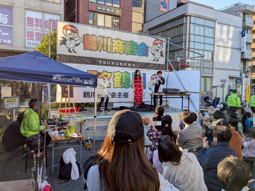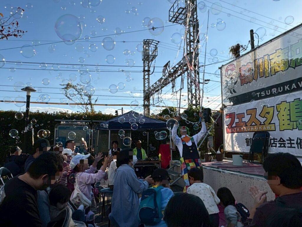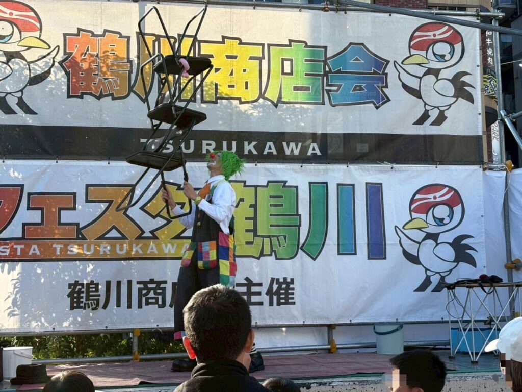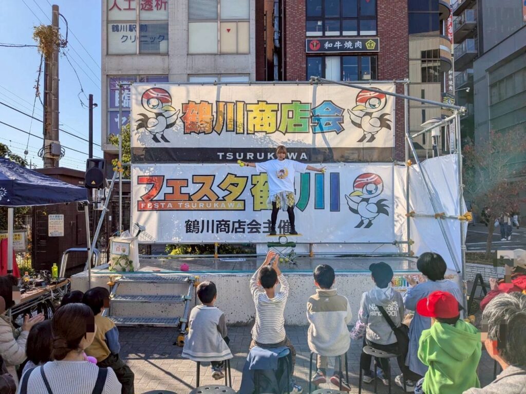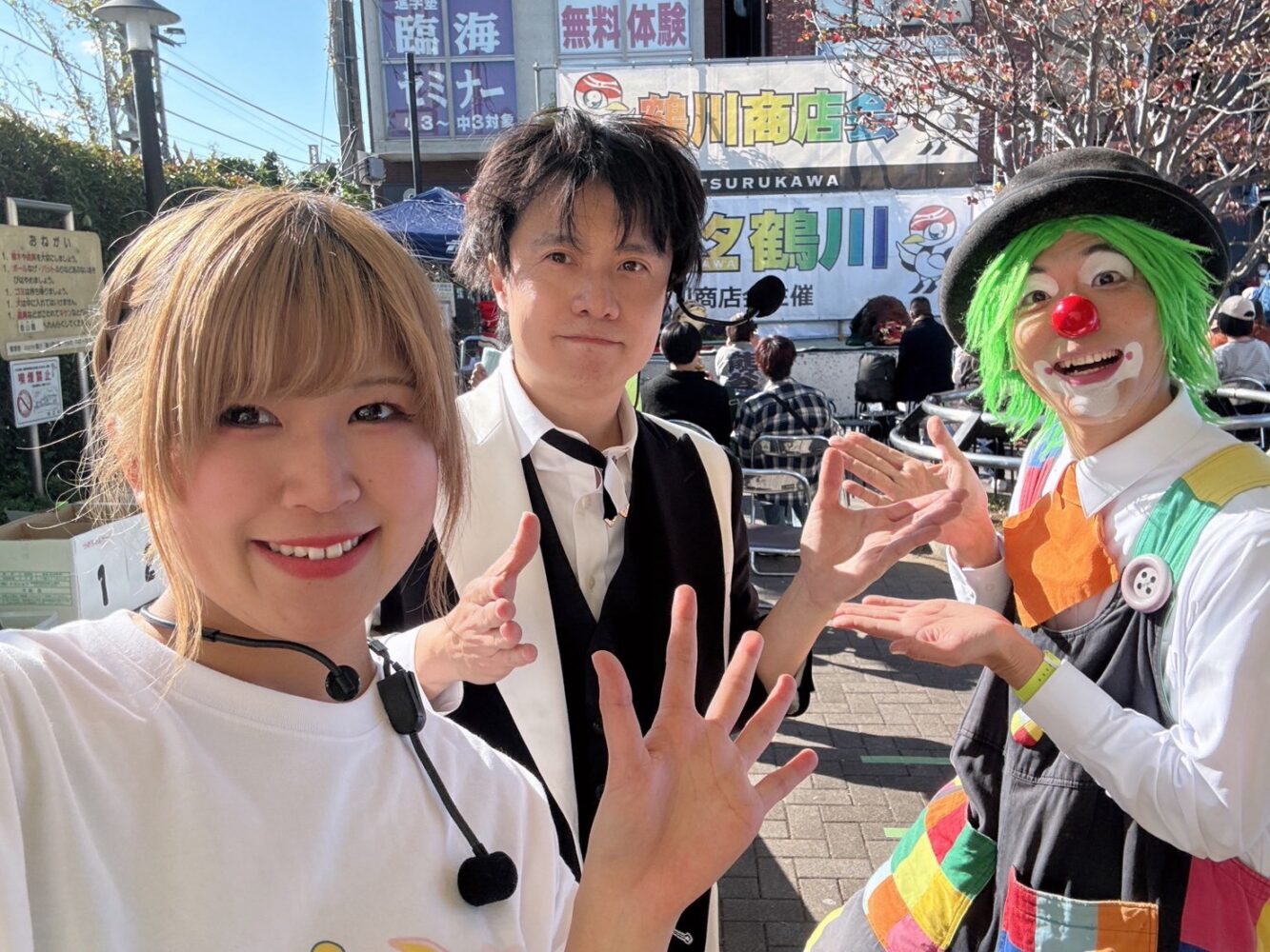 2025年11月23日東京都町田市鶴川の駅前で第14回フェスタ鶴川が開かれ、弊社代表メンタルマジシャン翔が4年連続で出演(+司会)、ジャグラー美羽(みう)とピエロのじーにょ、元アイドルの西沢さなみがイリュージョンの美女役で出演しました。以下レポートです。